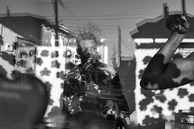 Kid Quai, left, and Nova, hang out in a convenience store after shooting a music video. Meadville, PA