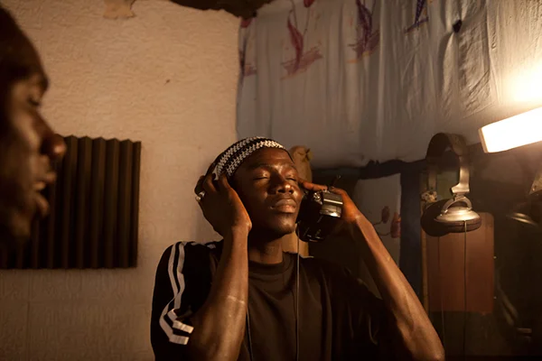 Policeman and musician. In the studio.
